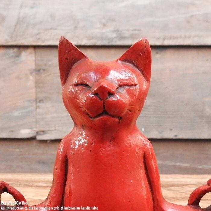 オブジェ ヨガネコさん 3 匹セット 赤 猫 ネコ キャット 座禅 胡坐 打坐 坐禅 レジン樹脂の動物 ウェルカム 置物3体 ハンドメイド バリ雑貨 アジアン雑貨 動物置物 樹脂製オブジェ エスニック アジアンインテリア バリ島 スーパーセール