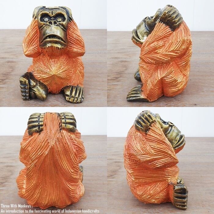 見ざる言わざる聞かざる 3体セット オブジェ スリーウィズモンキー 3 匹セット オレンジ ゴールド 金 橙色 黄色 猿 サル モンキー 可愛い レジン樹脂の動物 ウェルカム 置物 ハンドメイド バリ雑貨 アジアン雑貨 動物置物 樹脂製オブジェ エスニック アジアンインテリア