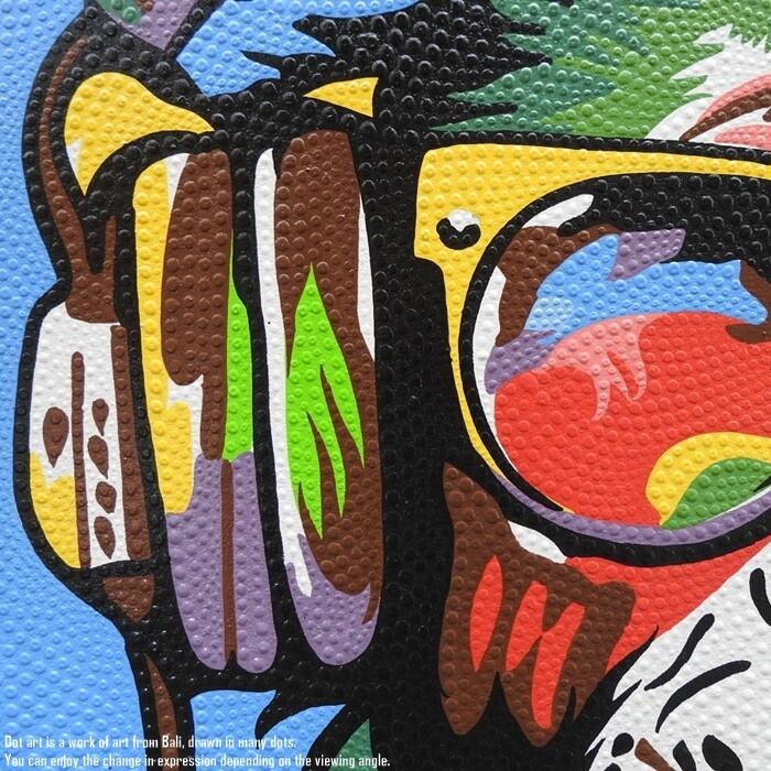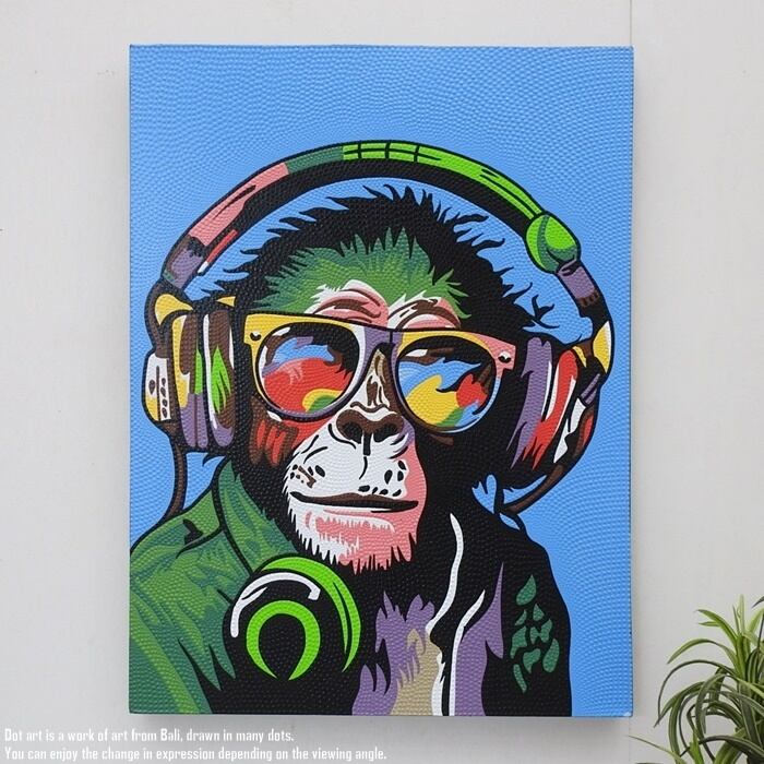 ドットアート 80cm × 60cm DJモンキー ドットペインティング モダンアート アジアンアート 手描き 絵画 アートパネル バリ絵画 バリアート ウォールデコレーション 飾り 壁掛け 壁飾り リゾート インテリア オブジェ 雑貨 おしゃれ 玄関 新築祝い プレゼント 癒し リビング
