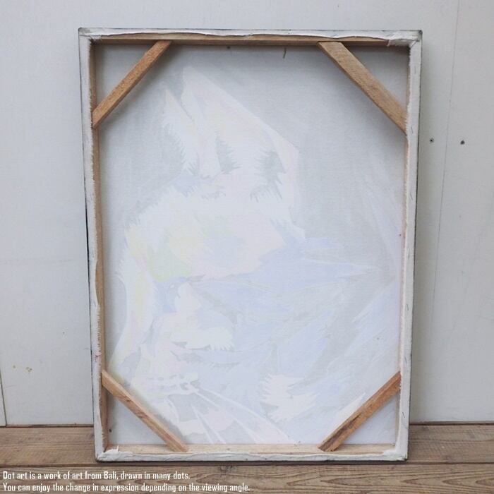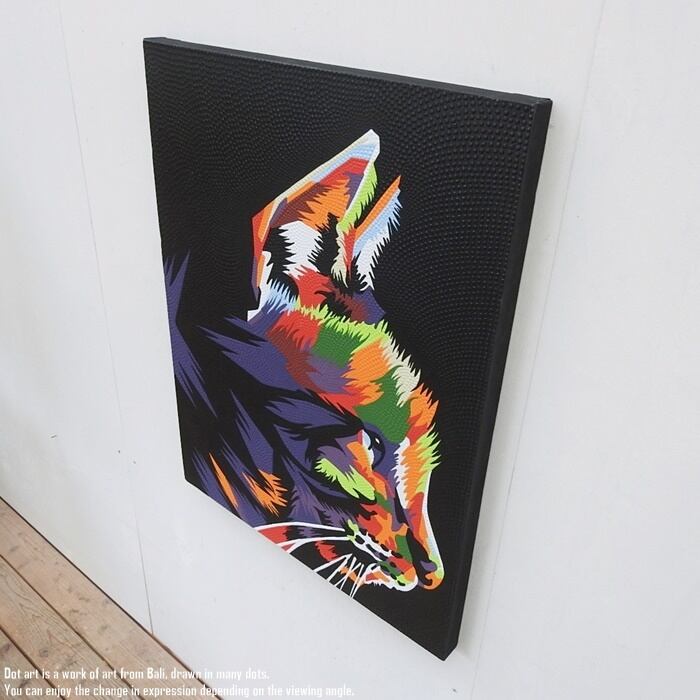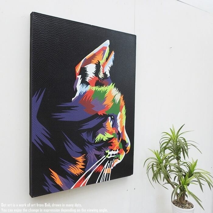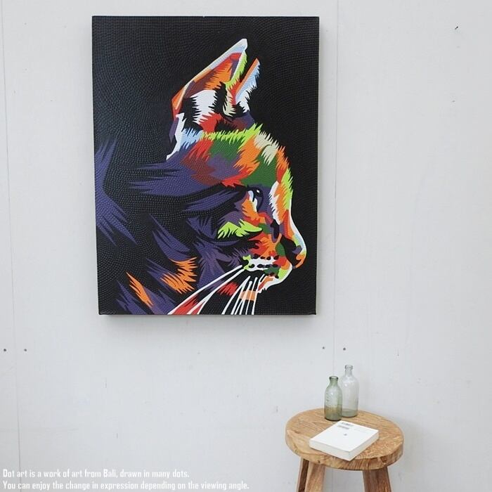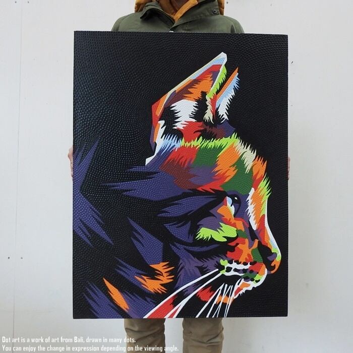 ドットアート 80cm × 60cm ネコ 横顔 ドットペインティング モダンアート アジアンアート 手描き 絵画 アートパネル バリ絵画 バリアート ウォールデコレーション 飾り 壁掛け 壁飾り リゾート インテリア オブジェ 雑貨 おしゃれ 玄関 新築祝い プレゼント 癒し リビング