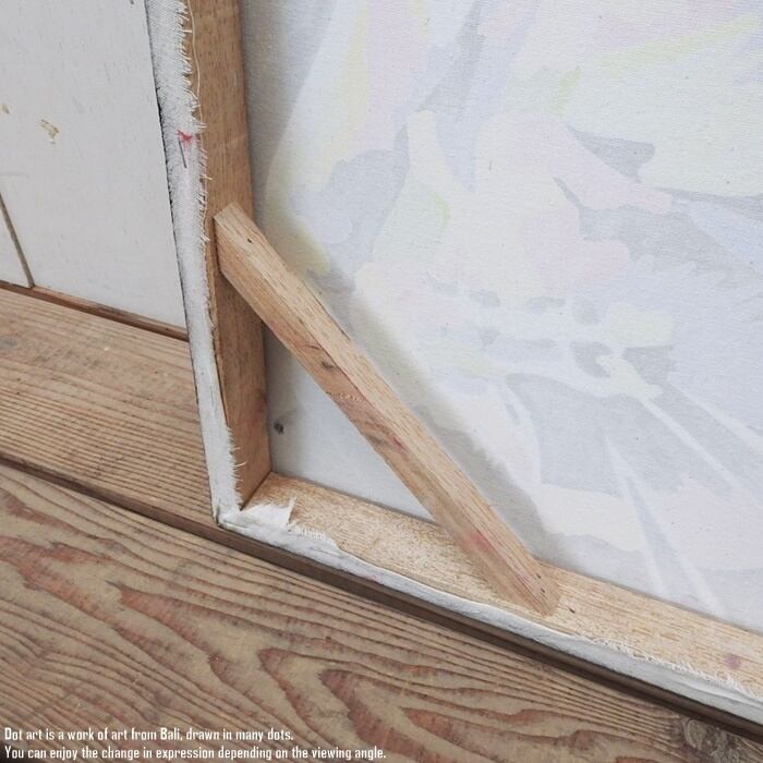 軽量なので壁のフック等に裏側の木枠を引っ掛けて飾ることができます。