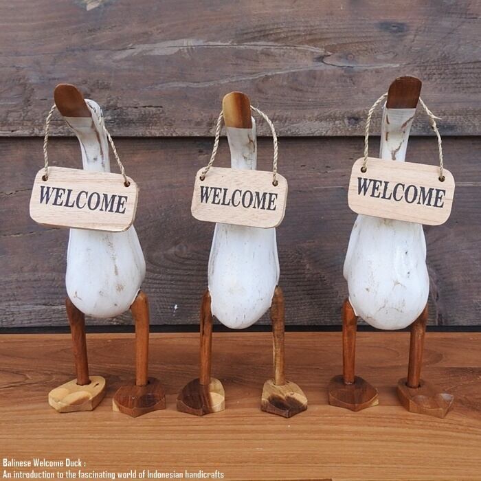 ウェルカムボード アヒルさん ホワイトウォッシュ Sサイズ ウェルカム人形 アヒル 家鴨 木彫りの動物 木製 竹製 ウッド 天然木 木彫りの置物 ハンドメイド 動物インテリア バリ雑貨 アジアン雑貨 動物置物 木製オブジェ エスニック アジアンインテリア バリ島