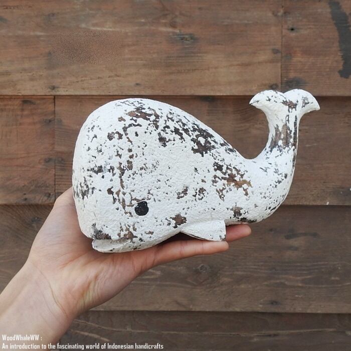 木製オブジェ クジラ M 25cm ホワイトウォッシュ 木彫りの動物 アート ウェルカムオブジェ 鯨 ホエール 装飾品 ハワイアン雑貨 ハワイ 玄関 ホテル 西海岸