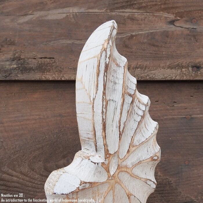 木製オブジェ オウムガイ 30cm 貝 ホワイトウォッシュ 木彫りのアート ハワイアン雑貨 玄関 ホテル 装飾品 ウッド 天然木 木彫りの置物 ハンドメイド 西海岸 デコレーション ハワイ 海のインテリア バリ雑貨 アジアン雑貨 動物置物 アジアンインテリア