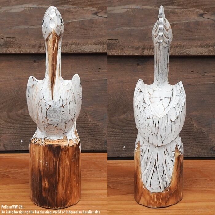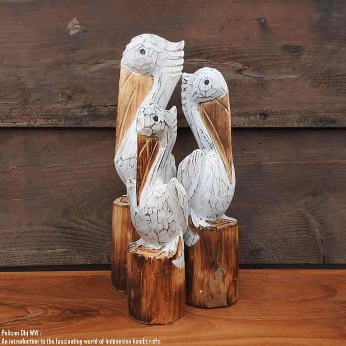 木製オブジェ 木にとまるペリカンさん 25cm ホワイトウォッシュ 木彫りの動物 ウェルカム 鳥類 海鳥 装飾品 木製 ウッド 天然木 木彫りの置物 ハンドメイド 動物インテリア バリ雑貨 アジアン雑貨 動物置物 ナチュラル エスニック アジアンインテリア バリ島