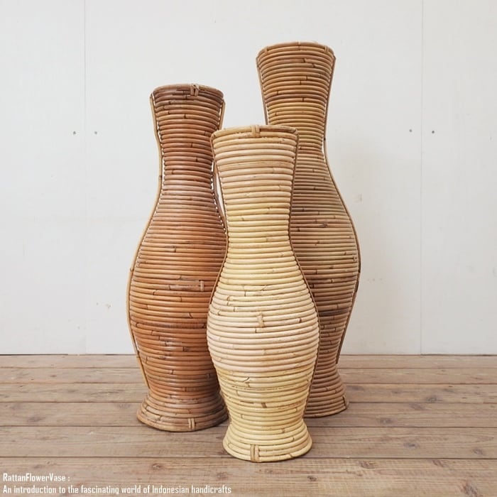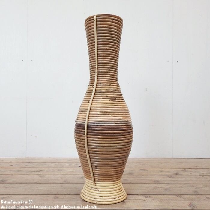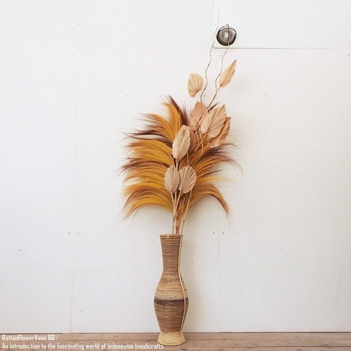 バリ島の職人が手作りしたラタンフラワーベース 60cmです。