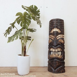 アンティークなティキ面50H ティキマスク 木彫りのお面壁掛けインテリア ハワイ雑貨木彫りのティキマスク(°▽°)