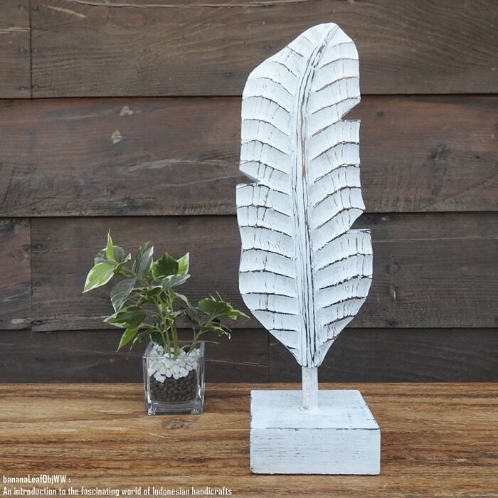 木製オブジェ バナナリーフ 35cm ホワイトウォッシュ 木彫りの植物 ウェルカム バナナの葉 装飾品 木製 ウッド 天然木 木彫りの置物 ハンドメイド 動物インテリア バリ雑貨 アジアン雑貨 動物置物 木製オブジェ エスニック アジアンインテリア バリ島