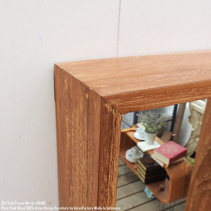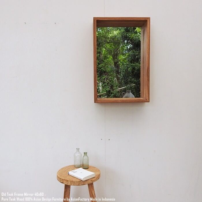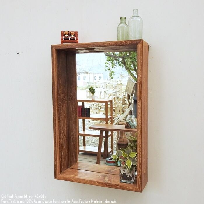 オールドチーク無垢材 箱型ミラー 60cm×40cm 奥行 12cm フレーム 棚 ボックス 壁掛け 化粧鏡 アジアン家具 古材 チーク材 木製フレーム ナチュラル シンプル エスニック 天然木 バリ家具 送料無料 ウォルナット マホガニーに並ぶ高級木材 業販 卸 スーパーセール