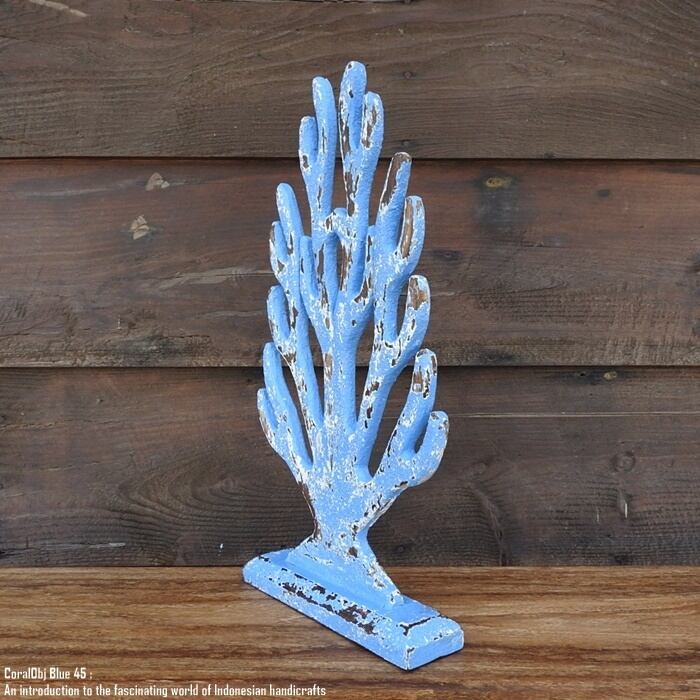 オブジェ コーラル 45cm サンゴ ブルーウォッシュ 木彫りの動物 ウェルカム 珊瑚 装飾品 木製 ウッド 天然木 木彫りの置物 ハンドメイド 動物インテリア バリ雑貨 アジアン雑貨 動物置物 木製オブジェ エスニック アジアンインテリア バリ島
