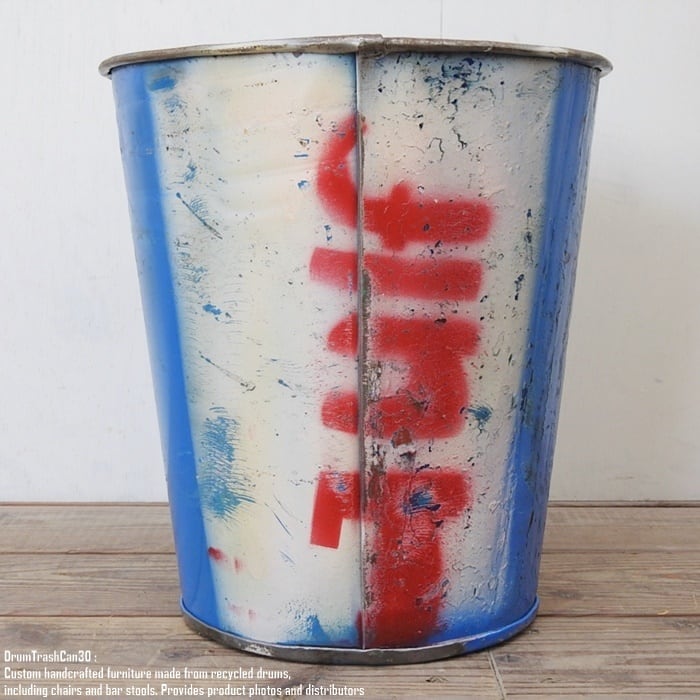 ドラム缶をリメイクした ゴミ箱 30cm D スチール製 ダストボックス 鉄製 上開き 蓋無し 丸形 金属 リメイク家具 店舗什器 男前家具 工業系 男前家具 工業系 インダストリアル家具 アイアン家具 古材 ブルックリン家具 世田谷ベース リサイクル デザイン家具 傘立て 物入れ