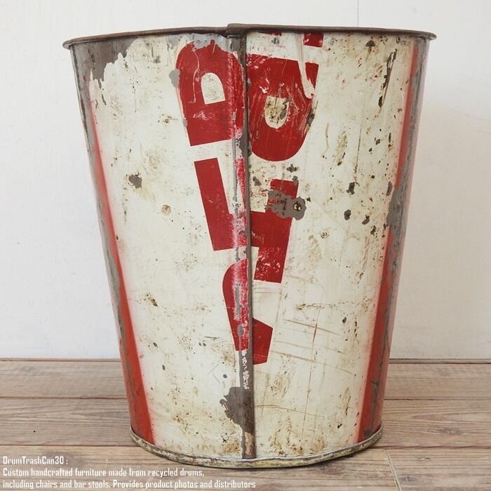 ドラム缶をリメイクした ゴミ箱 30cm C スチール製 ダストボックス 鉄製 上開き 蓋無し 丸形 金属 リメイク家具 店舗什器 男前家具 工業系 男前家具 工業系 インダストリアル家具 アイアン家具 古材 ブルックリン家具 世田谷ベース リサイクル デザイン家具 傘立て 物入れ