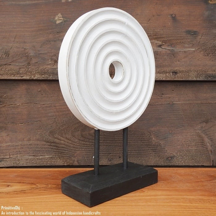 アジアンテイスト オブジェ [波] 35cm 木製装飾 ホワイトウォッシュ 手彫り 円形飾り 円盤オブジェ 木彫り アジアンテイストアート 土台付 装飾品 芸術品 木製 ウッド 置物 バリ雑貨 アジアン雑貨 バリ島 バリ風インテリア エスニック アジアンインテリア