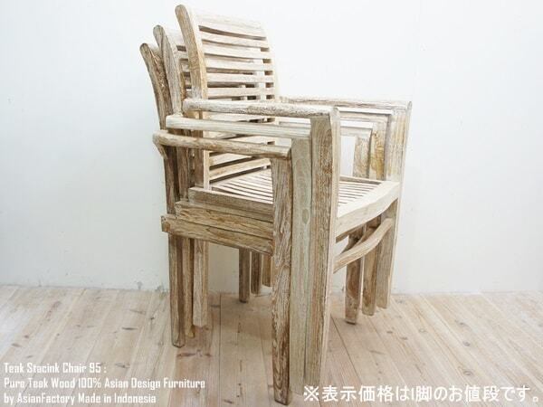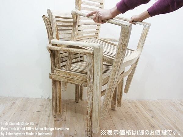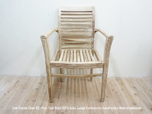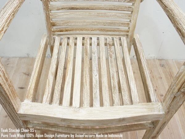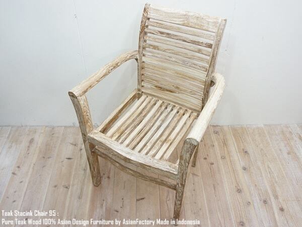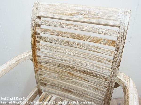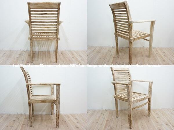 チーク無垢材 スタッキングチェア WW アームチェア 椅子 木製いす 天然木イス リゾート家具 バリ家具