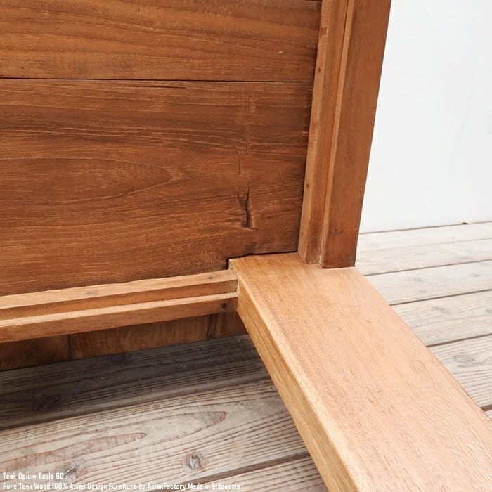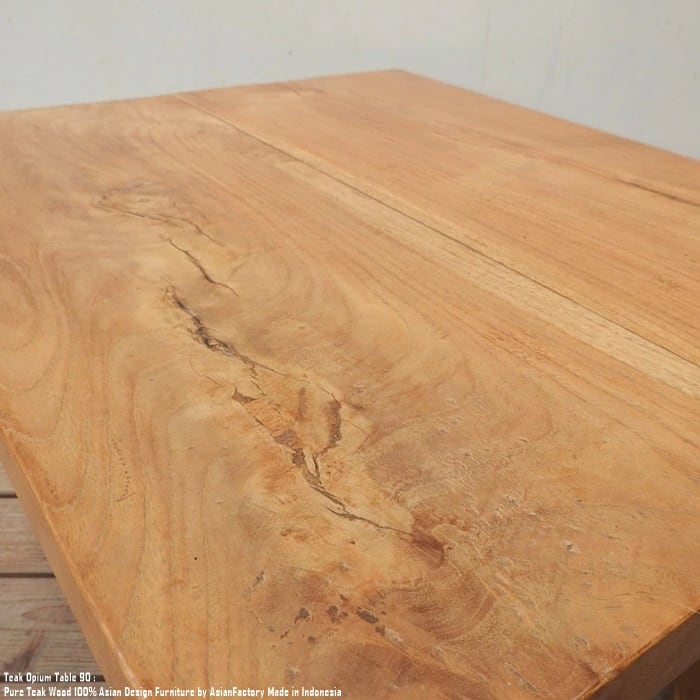 チーク材の中でもオールドチークは古い家屋を解体した木材などを利用した材料で、充分に乾燥し、若い木材より堅牢で独特の風合いがあります。