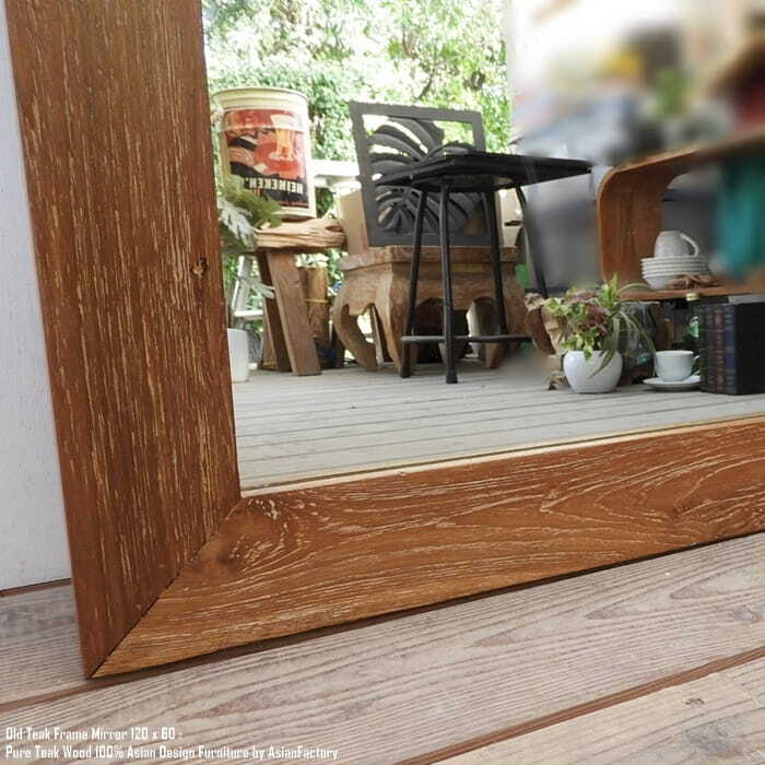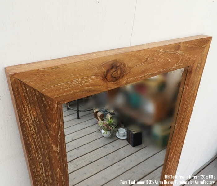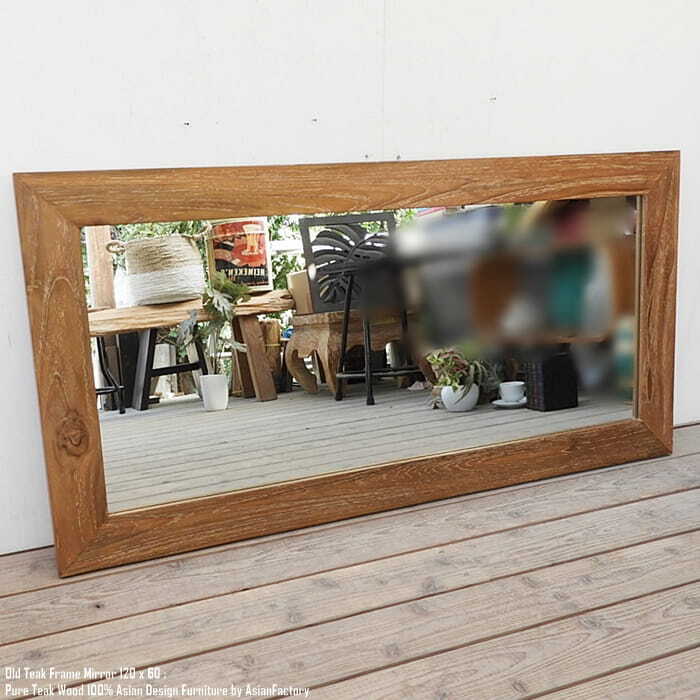 姿見鏡 120cm×60cm ナチュラルラスティック オールドチーク無垢材 全身ミラー 全身鏡 鏡 ミラー スタンドミラー バリ家具 アジアン家具 古材 チーク材 木製フレーム 天然木 モダンアジアン ウォールナット マホガニーに並ぶ高級木材 業販 卸