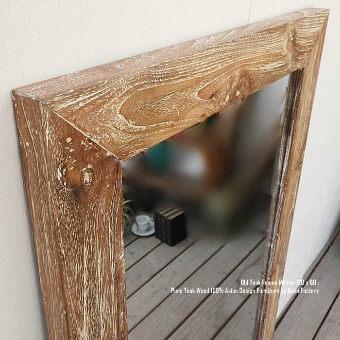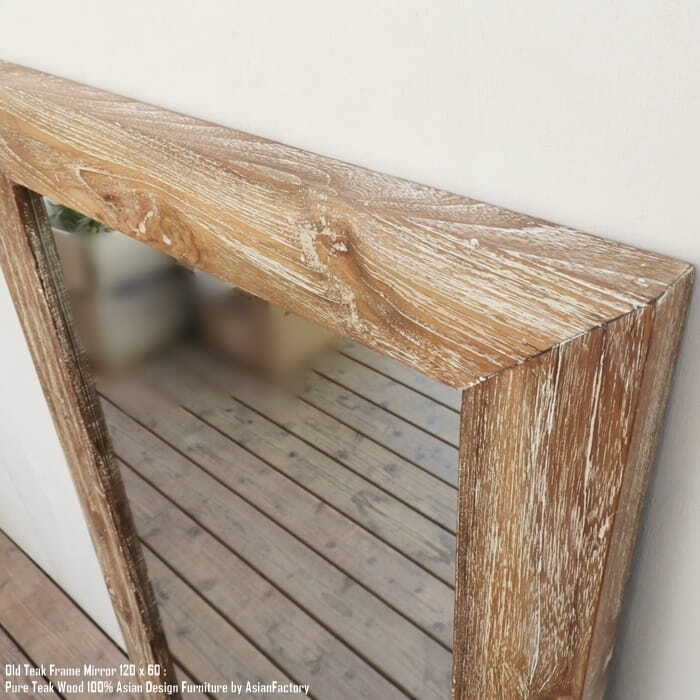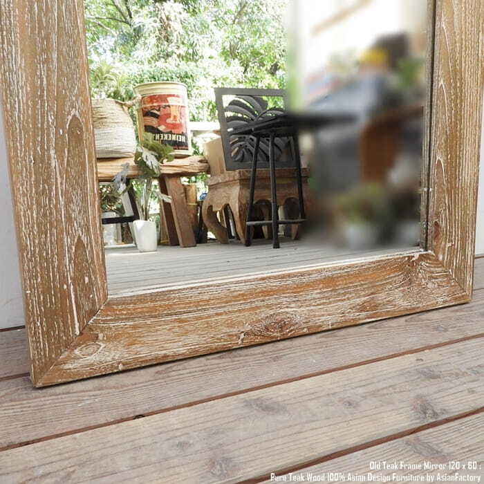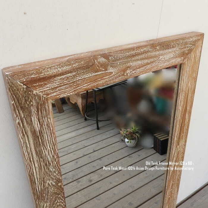 姿見鏡 120cm×60cm ホワイトウォッシュ オールドチーク無垢材 全身ミラー 全身鏡 鏡 ミラー スタンドミラー バリ家具 アジアン家具 古材 チーク材 木製フレーム 天然木 モダンアジアン ウォールナット マホガニーに並ぶ高級木材 業販 卸