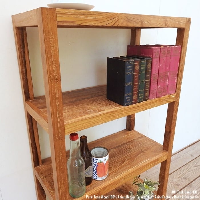 オールドチーク無垢材 4段ラック 幅60cm×高さ100cm オーディオラック 本棚 ウッドラック 整理棚 ブックシェルフ