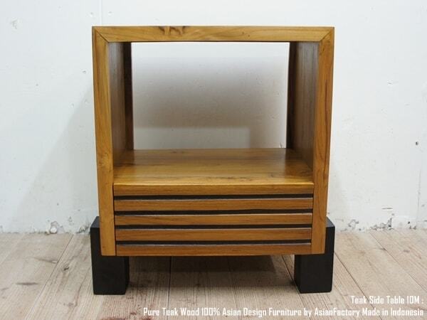 チーク無垢材 サイドテーブル 1DMT サイドチェスト 2段 収納付 オーディオラック ウッドラック