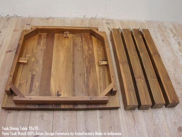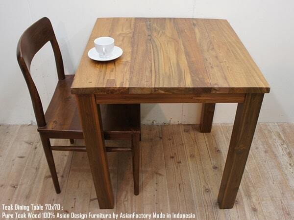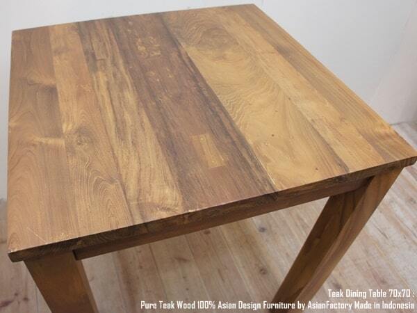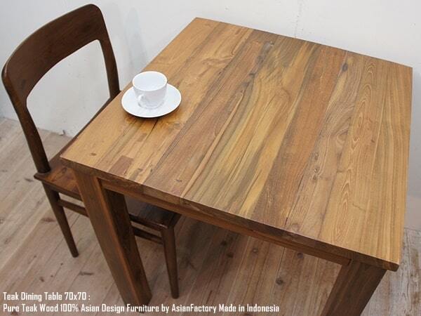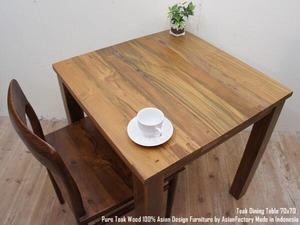 オールドチーク無垢材 ダイニングテーブル スクエア 70cm×70cm NA ナチュラルブラウン 正方形 ウッドテーブル