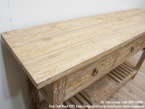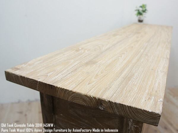 オールドチーク無垢材 コンソールテーブル3D 145 WW ホワイトウォッシュ 幅145cm 奥行36cm 高さ80cm