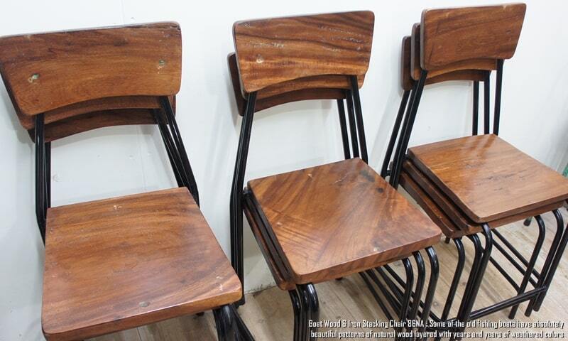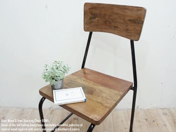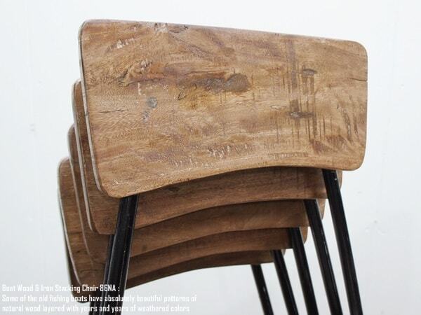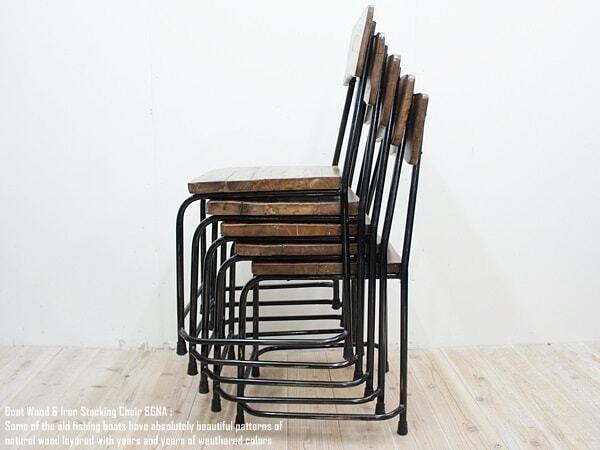 アイアンチェア86NA ボート再生家具 ナチュラルカラー スタッキングチェア アンティーク 無垢材 古材