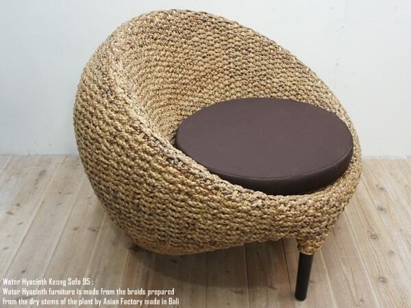 ウォーターヒヤシンスと呼ばれる水草をインドネシアの職人が1点1点編み込んだシングルソファです。