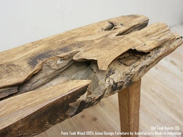 チーク材の中でもオールドチークは古い家屋を解体した木材などを利用した材料で、充分に乾燥し、若い木材より堅牢で独特の風合いがあります。
