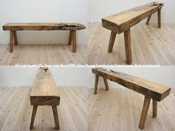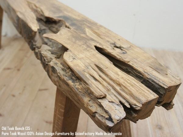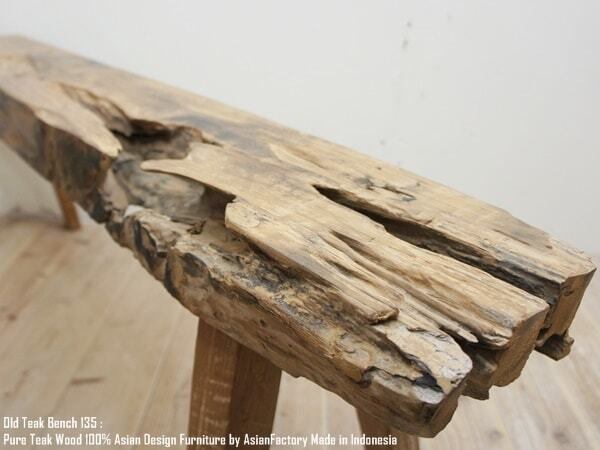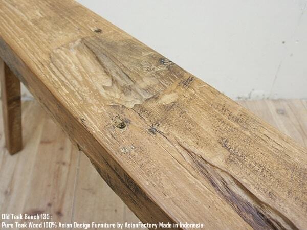 極厚 古材ベンチ 135cm オールドチーク材 総無垢材 チーク材 イス チェア ウッド 長椅子 木製椅子 古木