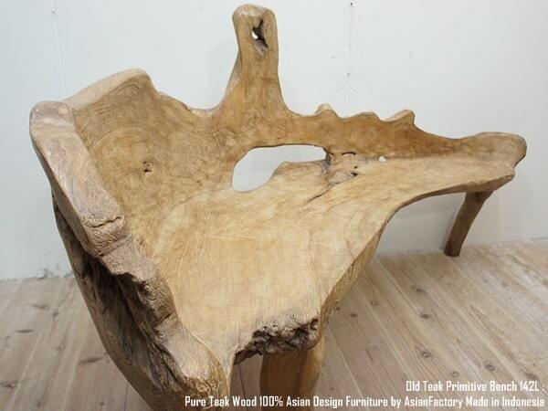 世界に一つのオールドチークベンチソファ142cm オールドチーク無垢材 ベンチ 142cm 椅子 木製いす 天然木 ナチュラル バリ家具 ホテル エントランス ロビー 高級木材 貴重なオールドチーク材
