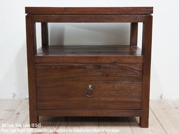 サイドテーブル 1D545AB オールドチーク無垢材 チーク材 収納 花台 飾り棚 天然木