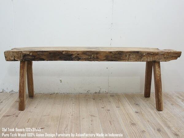 一点物 極厚オールドチークベンチ 132cm 総無垢材 スツール 屋外 ウッドベンチ 木製ベンチ 長椅子 木製椅子