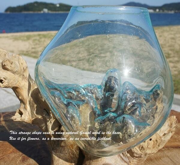 吹きガラスと天然木のオブジェS 金魚鉢 メダカ 水槽 アクアリウム テラリウム コケリウム 花瓶 流木ガラス