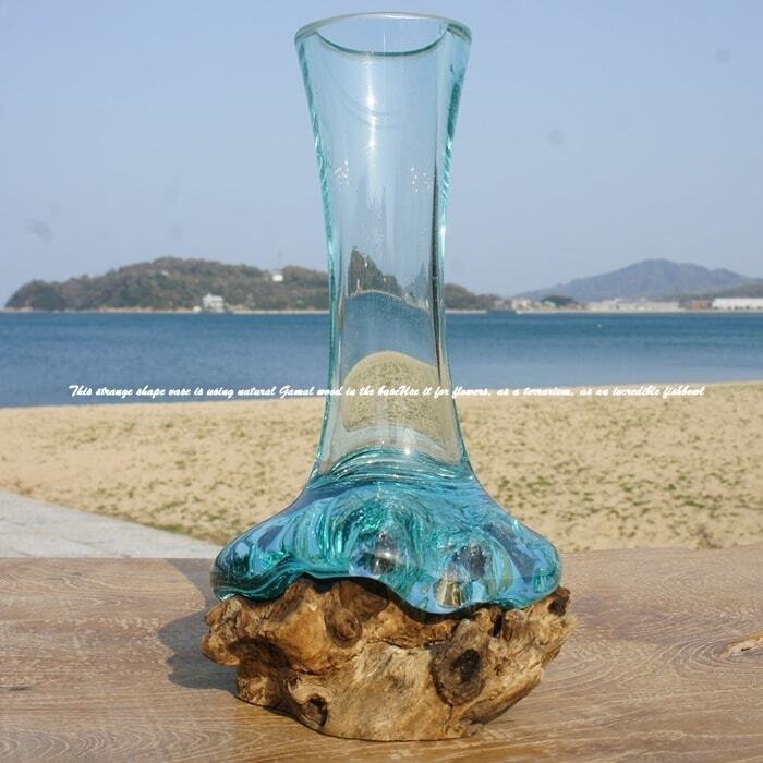 1点物 吹きガラスと天然木のオブジェ V25A 花瓶 一輪挿し 流木ガラス