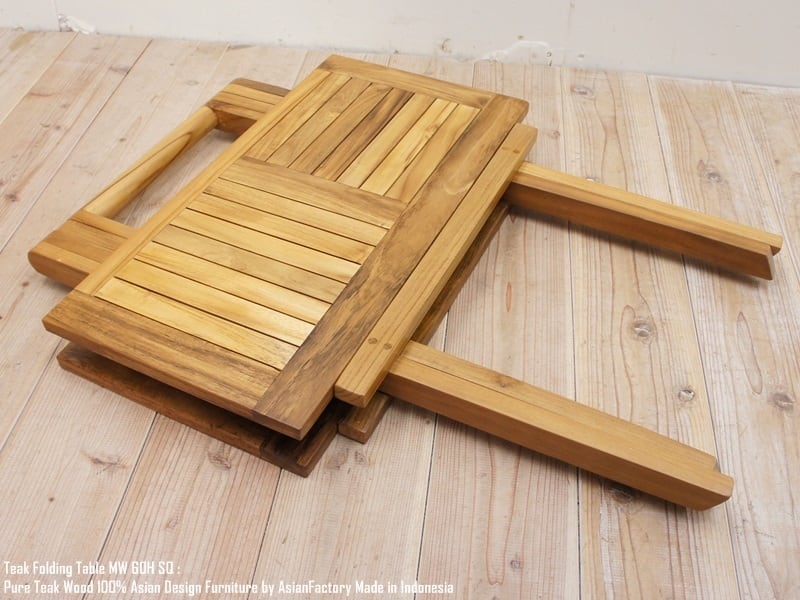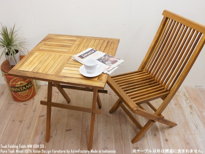 チーク無垢材 折りたたみテーブル 60cm×70cm 四角 スクエア