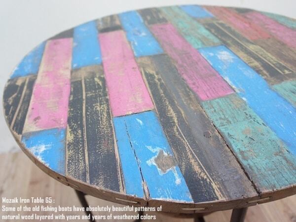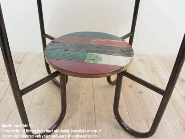 1点物 カラフルなアイアンテーブル 古材天板 65MZ04 無垢材 円卓 工業系 ボート古材 古木 リサイクルウッド