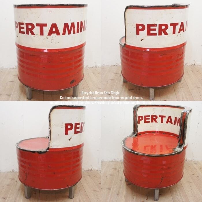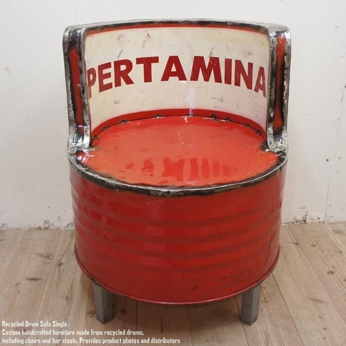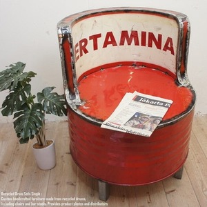 ドラム缶をリメイクしたシングルソファ スチール椅子 リメイク家具 ドラム缶チェア ソファー アイアンチェア リサイクル リメイク 古材 デザイン家具 鉄製いす インドネシア PERTAMINA