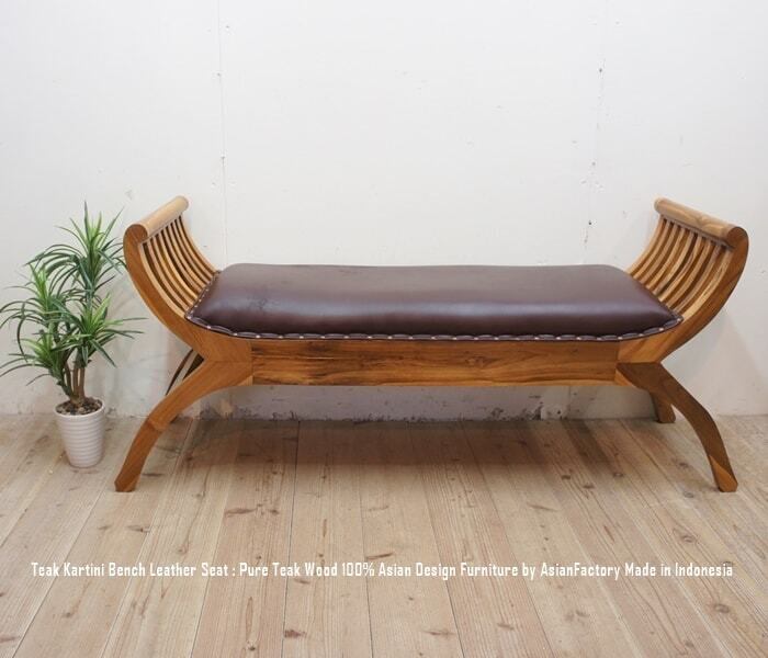 チーク無垢材 カルティニベンチ NA 牛革 本革 ナチュラルブラウン バリ家具 アジアン家具 長椅子 スツール クラブチェア 長椅子 ウォールナット マホガニーに並ぶ高級木材