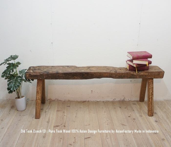極厚オールドチーク古材を利用したベンチ131.5cmです。