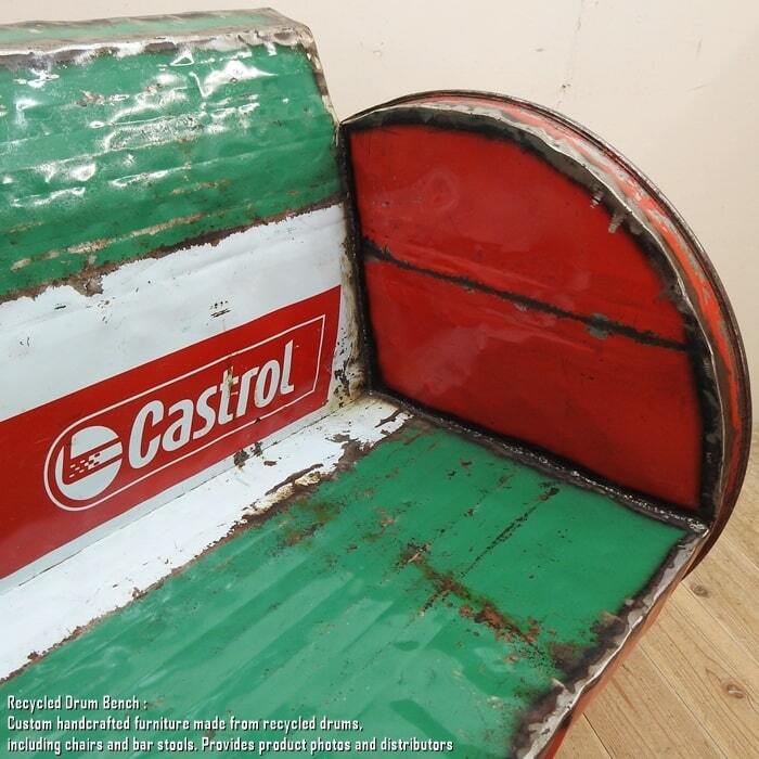 みなさんご存じ、イギリスの老舗オイルブランドカストロール(Castrol)のドラム缶を超インパクトのあるベンチへリメイクいたしました。