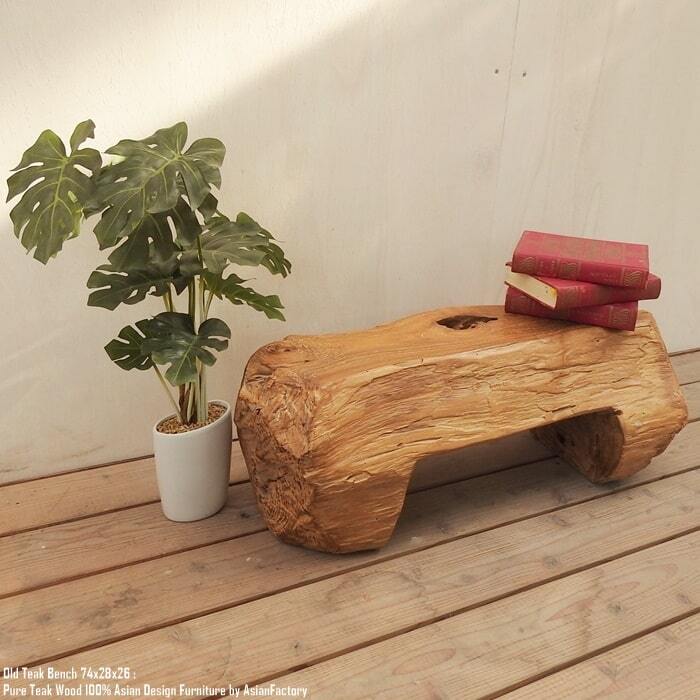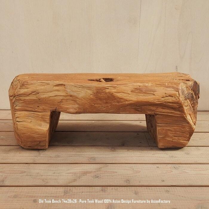 超極厚 オールドチーク スツール 74cm チーク材 ベンチ 総無垢材 バリ家具 アジアン家具 長椅子 木製いす 天然木 アンティーク