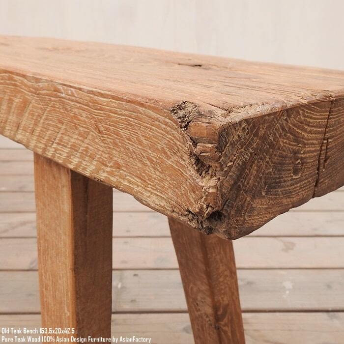 極厚オールドチーク古材を利用したベンチ153.5cmです。