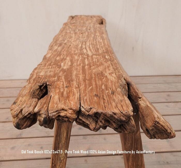 一点物 スツール 木製 102cm オールドチーク材 ベンチ 総無垢材 一枚板 アジアン家具 木製いす 天然木 バリ家具 アンティーク