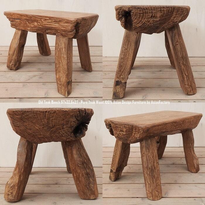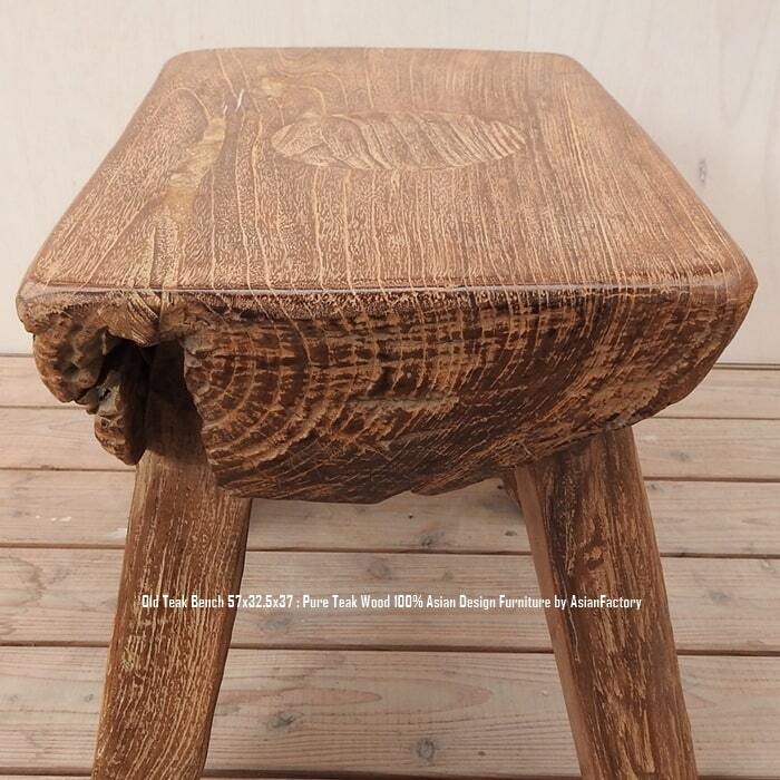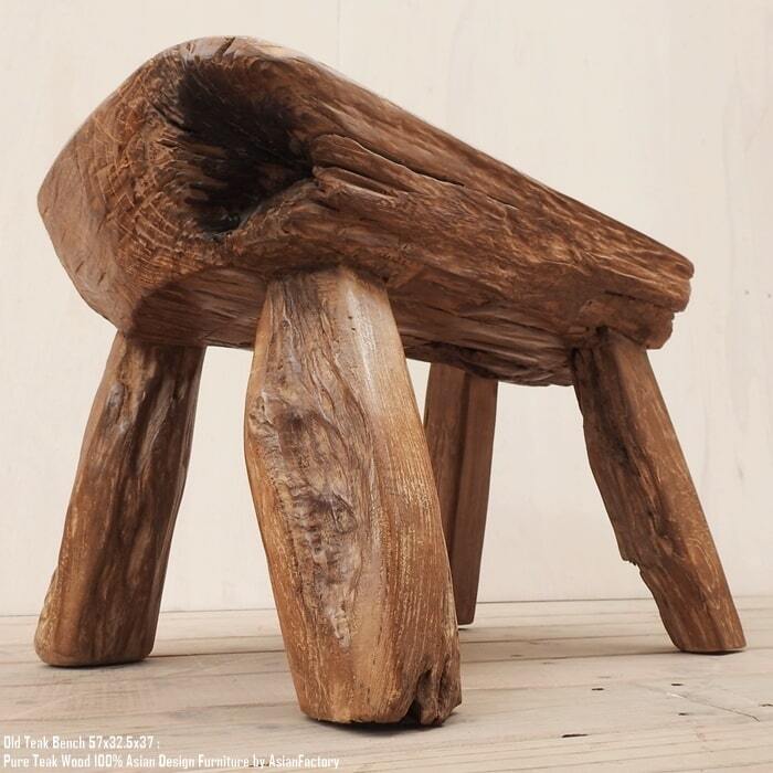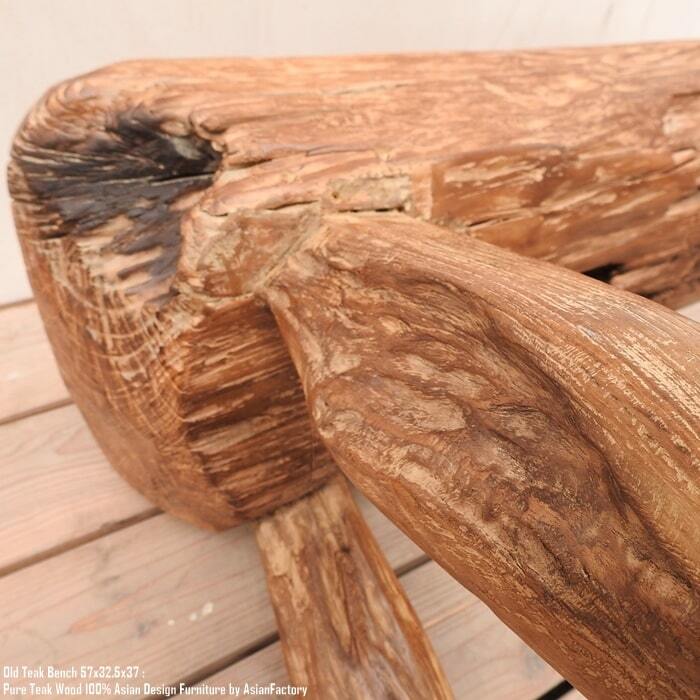 厚さ14cm!! オールドチーク無垢材 極厚一枚板スツール 57cm ベンチ テーブル アジアン家具 椅子 チーク材 古材 花台 バリ家具 手作り アンティーク