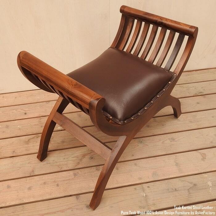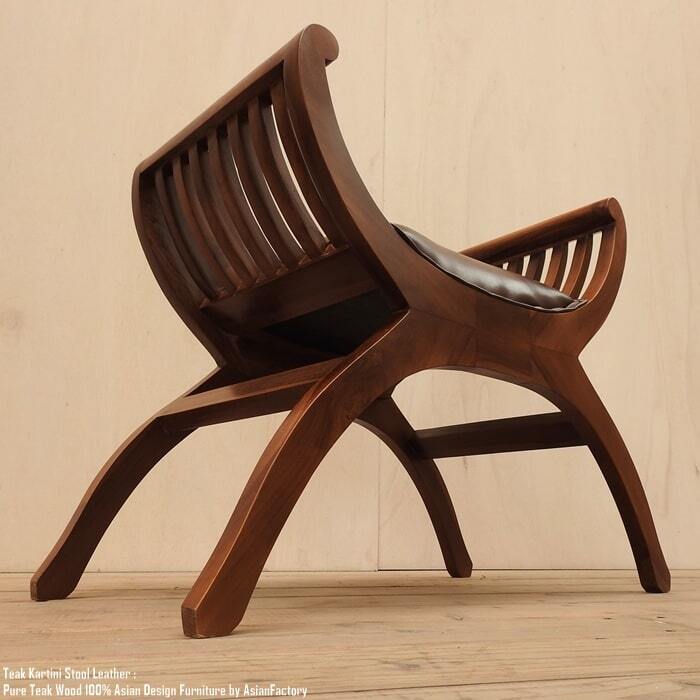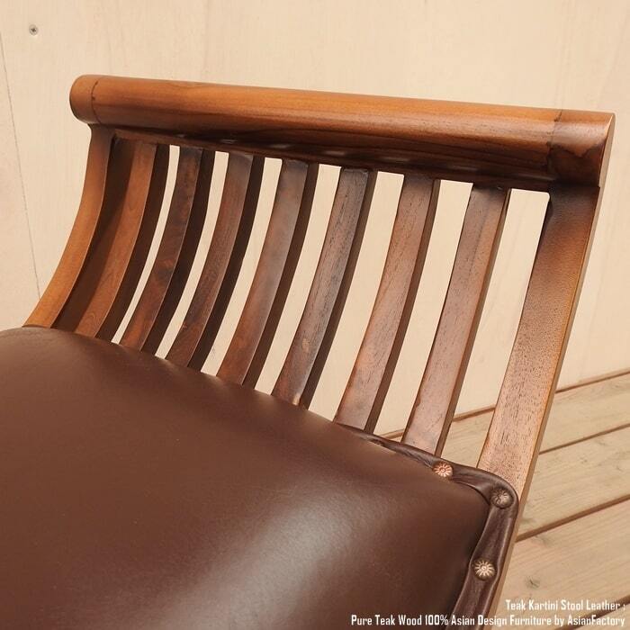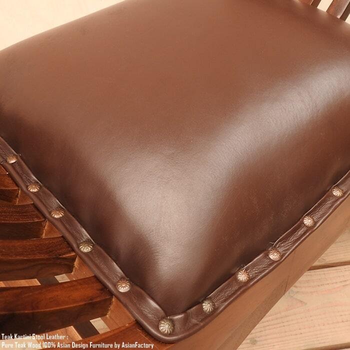 チーク無垢材 カルティニチェア レザー TB ティーブラウン 牛革 革張りスツール ウッドチェア 腰掛 椅子 木製いす 天然木 バリ家具 1人掛け