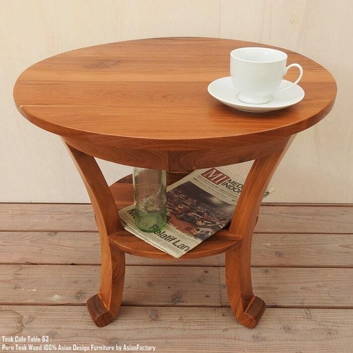 チーク材のカフェテーブル NA 53cm ナチュラルブラウン アジアン家具 チーク無垢材 バリ家具 バリ島インテリア コーヒーテーブル ラウンドテーブル チーク材 サイドテーブル ナイトテーブル 丸型テーブル