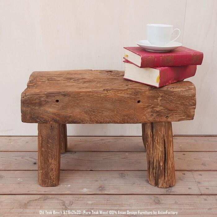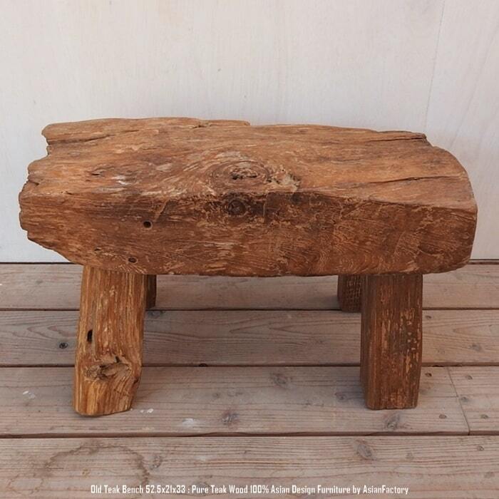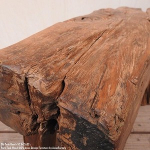 オールドチーク無垢材 極厚一枚板スツール 52.5cm ベンチ テーブル アジアン家具 椅子 銘木 チーク材 古木 古材 天然木 花台 飾り台 バリ家具 手作り ハンドメイド アンティーク