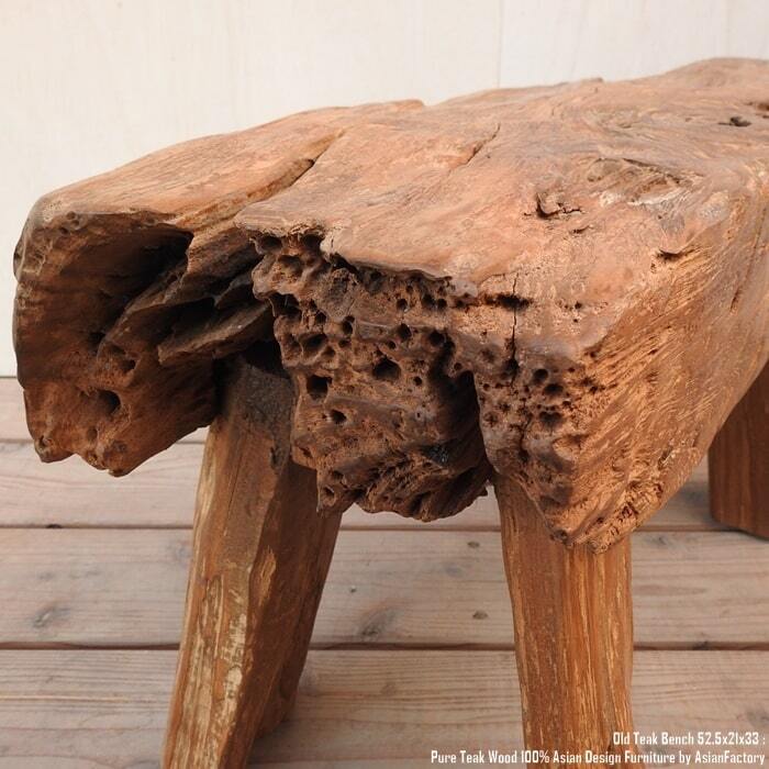 チーク材の中でもオールドチークは古い家屋を解体した木材などを利用した材料で、充分に乾燥し、若い木材より堅牢で独特の風合いがあります。