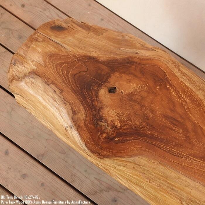 チーク材の中でもオールドチークは古い家屋を解体した木材などを利用した材料で、充分に乾燥し、若い木材より堅牢で独特の風合いがあります。