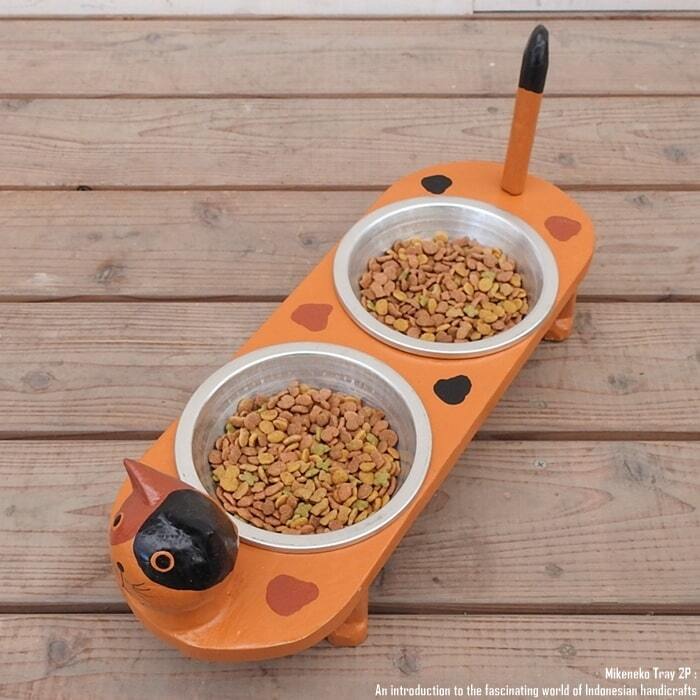 三毛猫 餌入れ フードボール キャットフード トレー 2P 2連 ダブル エサ入れ 水入れ ペット 猫 ネコ 猫用 犬 犬用 えさ皿 ペット用食器 猫用食器 犬用食器 小物入れ 鍵入れ アクセサリー入れ アニマル雑貨 バリ雑貨